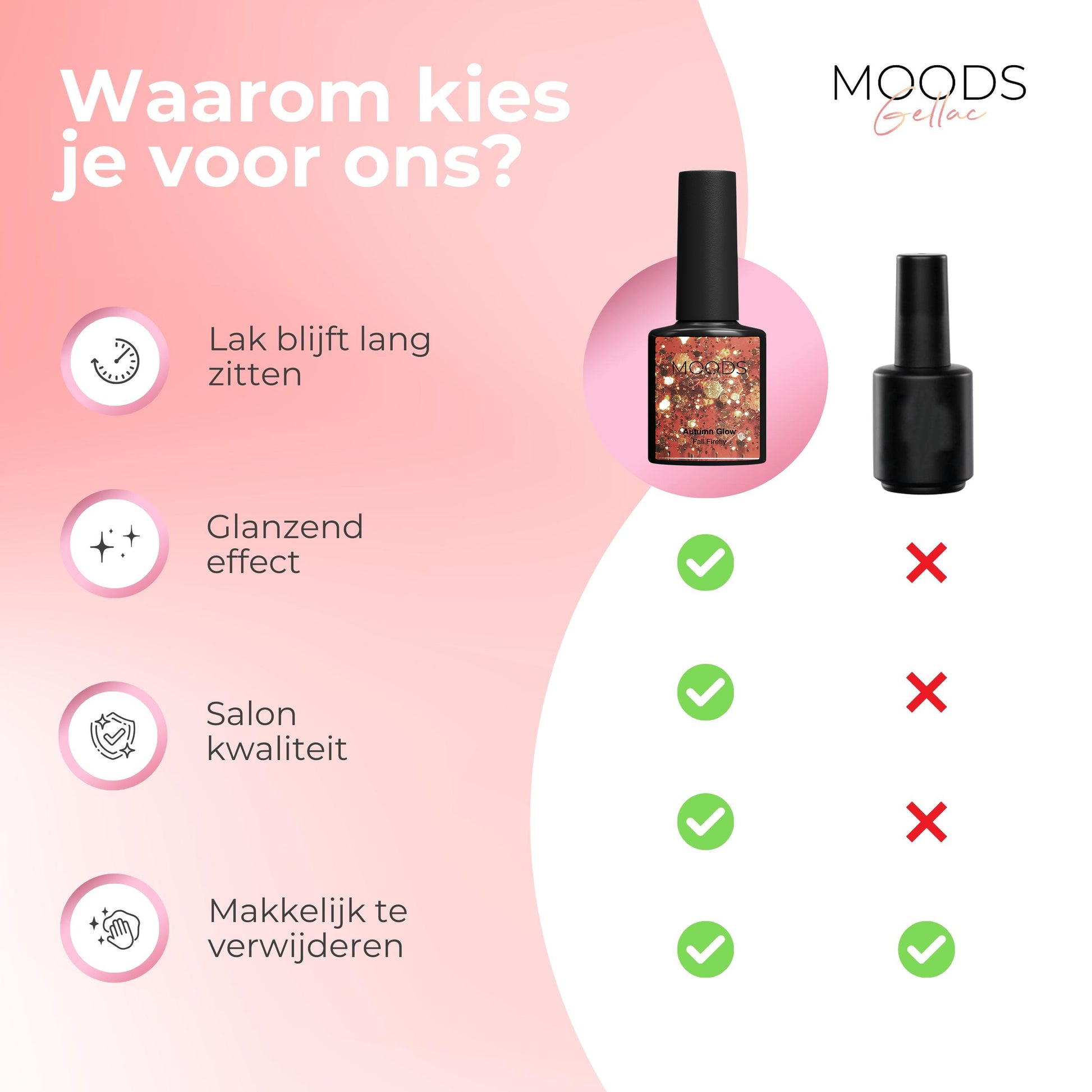Met Moods Gellac tover je je nagels om tot een professionele look, gewoon vanuit huis. Het enige wat je nodig hebt, zijn deze vier eenvoudige stappen: