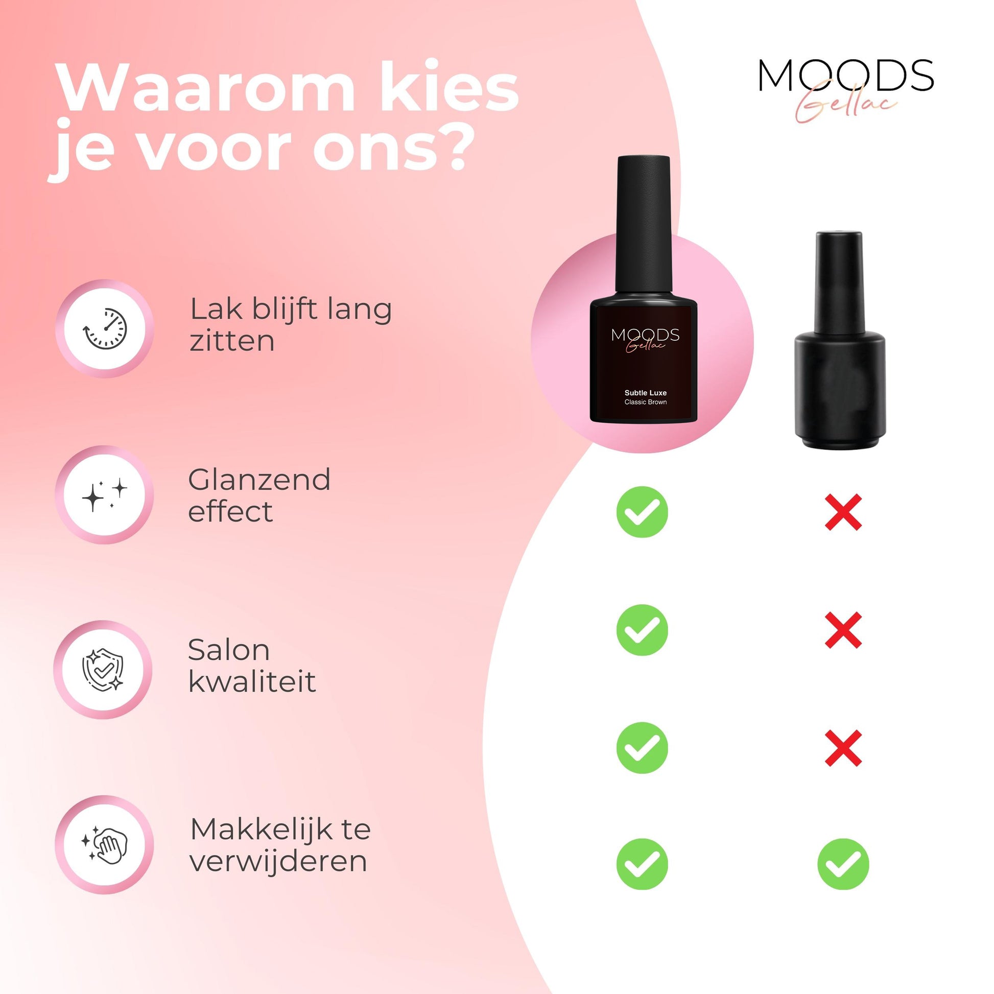 Met Moods Gellac tover je je nagels om tot een professionele look, gewoon vanuit huis. Het enige wat je nodig hebt, zijn deze vier eenvoudige stappen:
